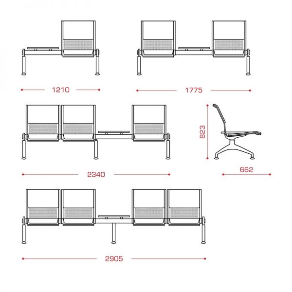 Флайт+ БП со столиком (5-и местн.) мод.МС1/2А-05 3 стойки, металлический каркас, 4 перфорир. сиденья с накладками, 1 столик из ком.-ламин., без подлокотников, 135090,00 руб.