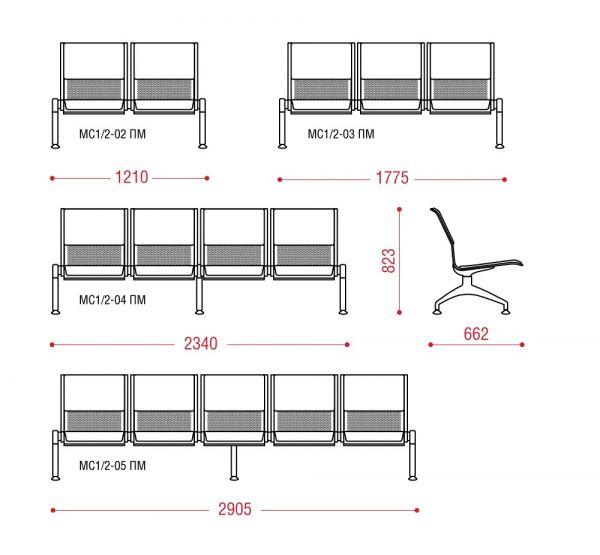 КРЕСЛА ДЛЯ АЭРОПОРТОВ Флайт PU БП мод. МС1/2