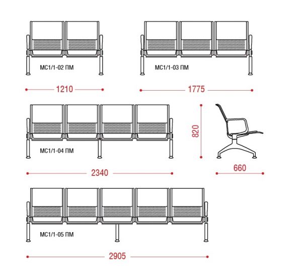 Флайт PU 2П (5-ти местн.) ИППУ мод.МС1/1-05 3 стойки металлический каркас, перфорированные сиденья с ИППУ накладками, 2 подлокотника, 223860,00 РУБ.