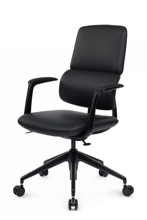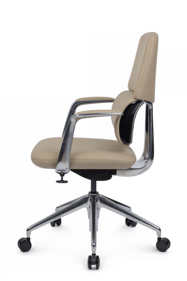 Подлокотники: черный алюминий, с накладками из натуральной кожи в цвет кресла
