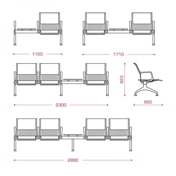 Флайт PU 4П со столиком (3-х местн.) ИППУ мод.МС1А-03 металлический каркас, 2 перфорир. сиденья с ИППУ накладками, 1 столик из ком.-ламин., 4 подлокотника, 136730,00 РУБ.