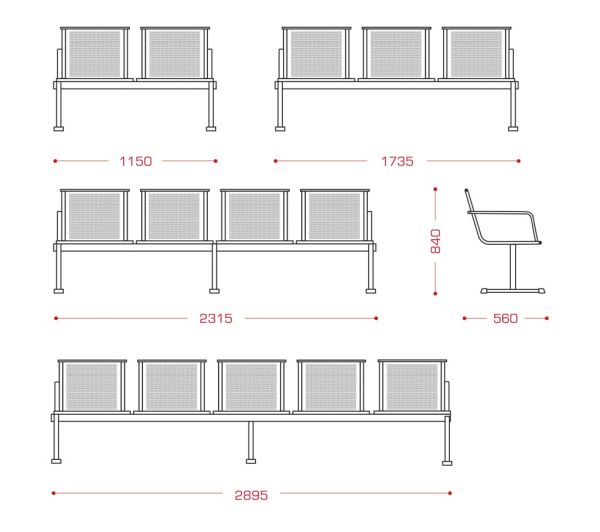 Форум 2П (5-ти местн.) мод.СМ 88/3-2П-05 с дополнительной стойкой металлический каркас – труба 50х50, 50х25, перфорированные сиденья, 2 подл-ка по краям, 33890,00 руб.