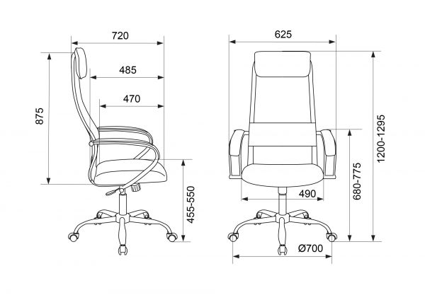 Высота с подлокотниками MIN 680