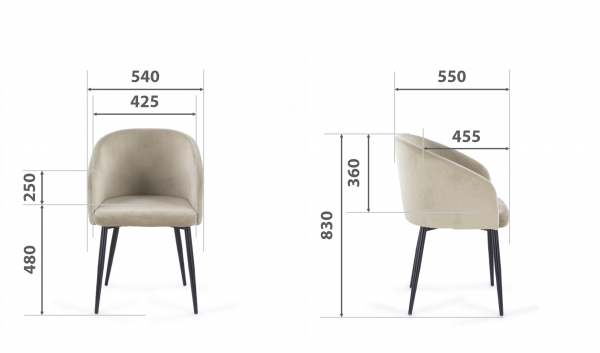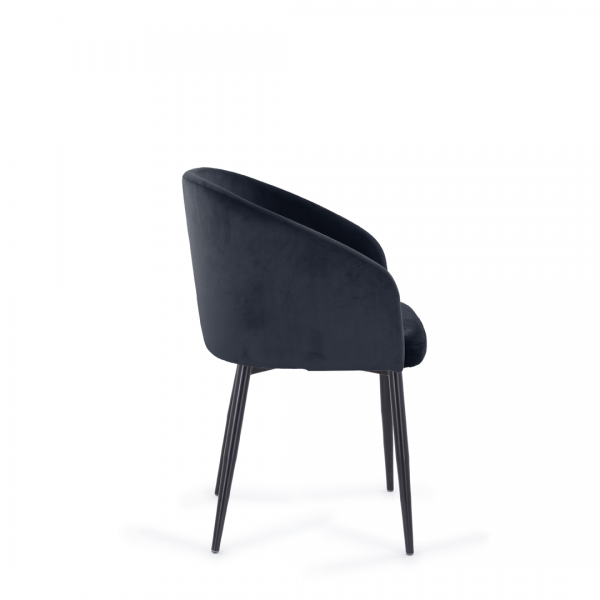 Мягкая обивка, слегка закруглённая спинка и сиденье из мягкого велюра обеспечивают комфорт в каждой детали. Тонкие металлические ножки придают стулу лёгкость и современный вид, который легко впишется в любой интерьер — от скандинавского до классического.