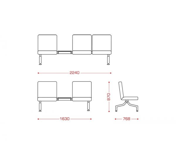 Многоместная секция "Slot" прекрасно впишется в холл или рекреацию медицинского учреждения.