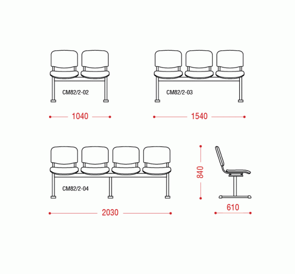 Трио (4-х местн.) мод.СМ 82/2-04 с дополнительной стойкой, металлический каркас – труба 50х25, труба плоско-овальная 30х15, 21270,00 руб.