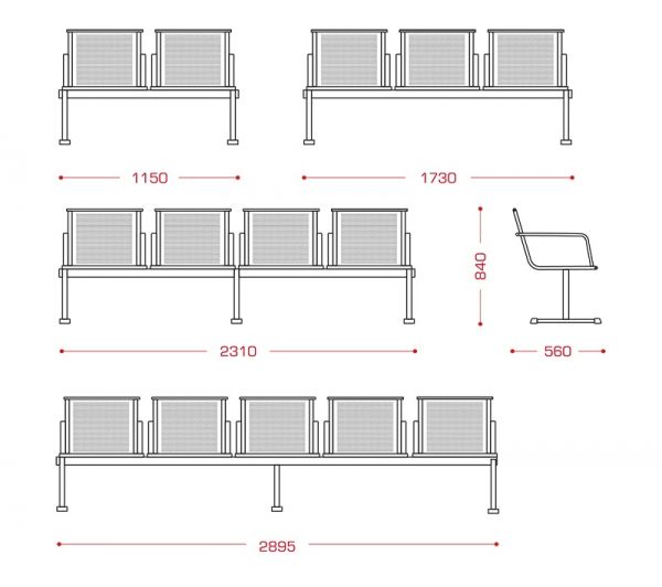 "Форум" - многоместный стул в антивандальном исполнении с подлокотниками предназначен для эксплуатации в общественных местах ожидания с большой проходимостью - на вокзалах, в аэропортах, на стадионах, в дворцах спорта, в холлах общеобразовательных учреждений, в коридорах больниц, поликлиник, общежитий.