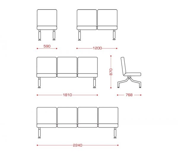 Многоместная секция "Slot" прекрасно впишется в холл или рекреацию медицинского учреждения.