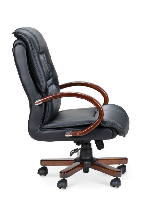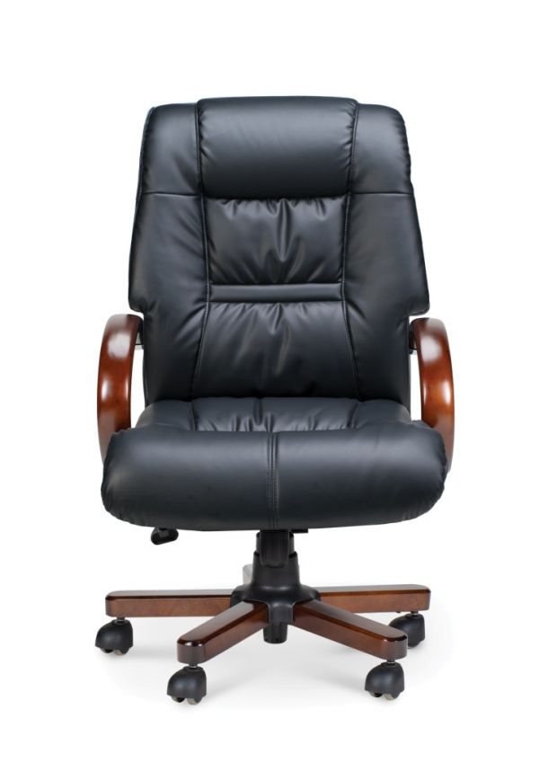 P3182-02 Кресло офисное / Берн / дерево + хром / черная экокожа